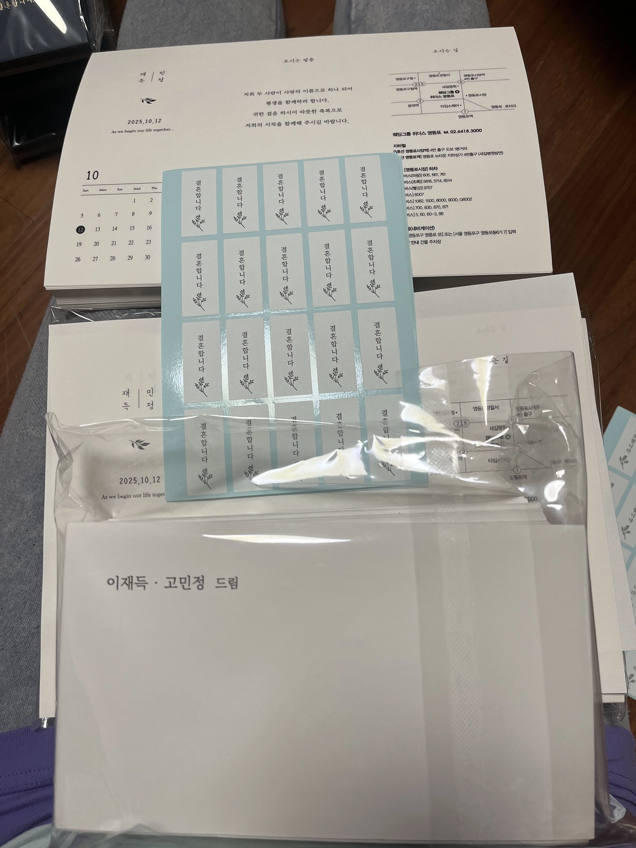 제가 이 청접장을 고른건 시안 자체가 굉장히 심플하고 모던해서였습니다. 처음에 받아보았을 때는 너무 마음에 들었는데 사실 마지막 <오시는 길>은 만들어 주신게 너무 복잡하고 장신 없어서 제가 지도와 교통편 서체를 다시 만든것입니다. 물론 인쇄용 파일로 전달 드렸구요. 근데 막상 확인해 보니 띄어쓰기가.. 잘못되었드라구요. 아무래도 제가 디자인쪽 일을 하다 보니깐 더 눈에 띈것도 있구요. 회사 직원들 나눠주면 분명히 오타라고 할텐데 그생각이 들어서 바로 문의했더니 1~2mm의 오차는 허용이 된다고 제가 한거랑 똑같이 나왔다는 겁니다. 재인쇄까지는 바라지 않았는데 그래도 잘못에 대한 죄송한 마음은 듣고 싶었는데 솔직히 띄어쓰기가 1~2mm의 오차에 들어 간다는게 말이 되는건가요? 재단(종이가 잘리는 부분)이나 접지(종이가 접히는 부분)나 그런 부분은 이해를 해도 말이죠. 어떻게 보면 고이장히 사소한 건데 그래도 실수에 대해선 인정을 하고 죄송한 마음은 표현해 주셨으면 좋겠습니다.