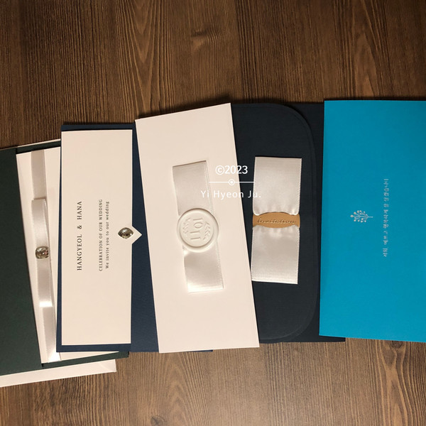심플한 거 화려한 거 귀여운 거 요즘 많이 나오는 리본이 붙은 청첩장 들을 몇 종류 신청했는데